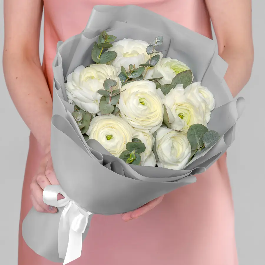 Букет из Белых Ранункулюсов и Эвкалипта — купить по цене от 4560 руб. с доставкой в Нижнем Новгороде