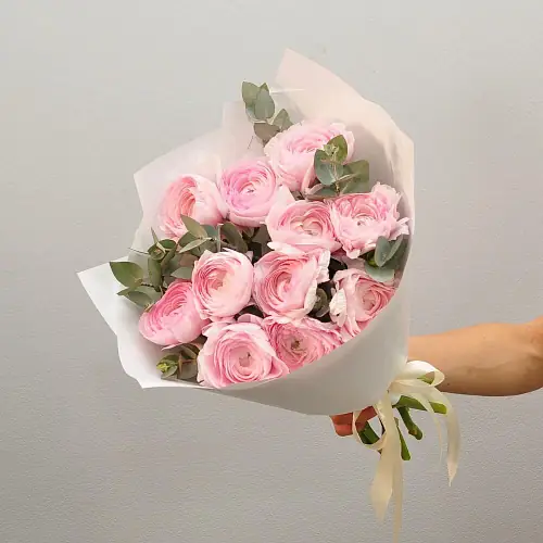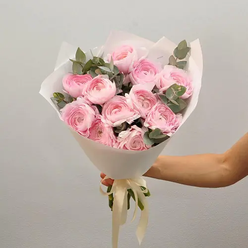 Нежные ранункулюсы с эвкалиптом — купить по цене от 5190 руб. с доставкой в Нижнем Новгороде