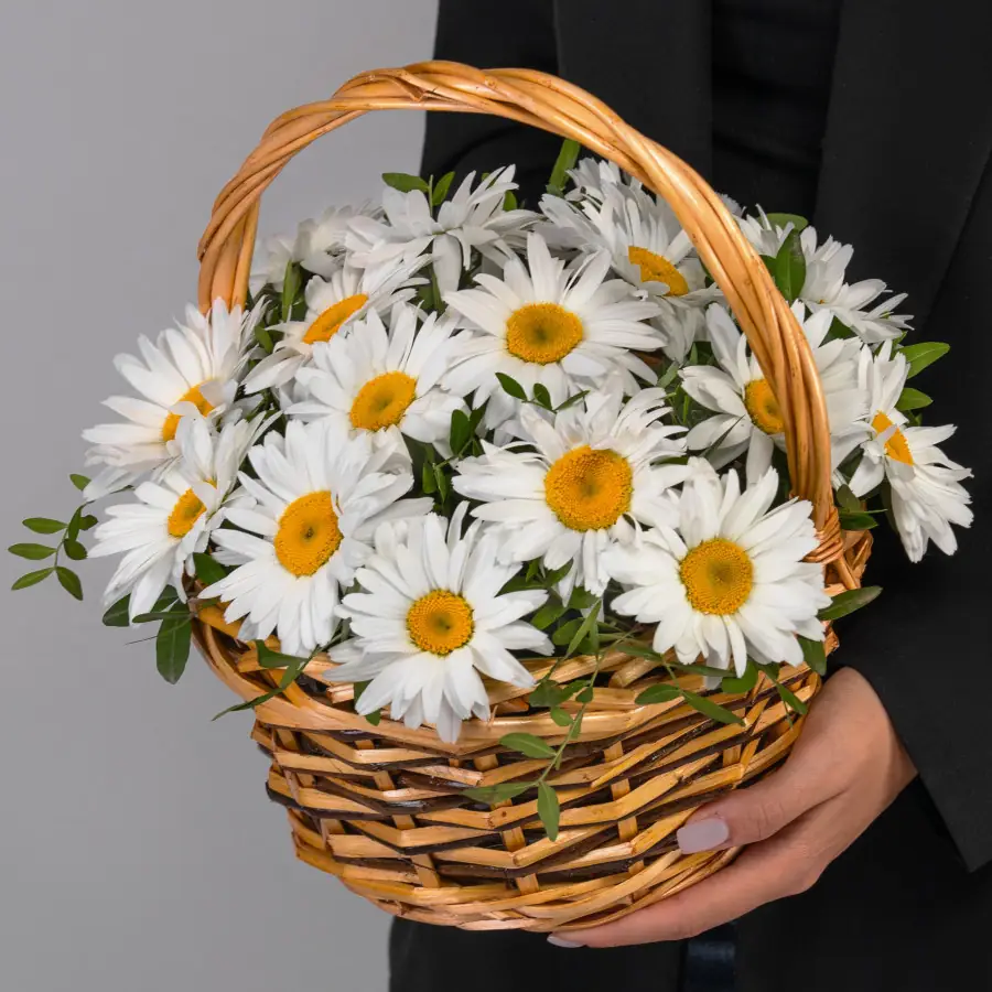 15 Крупных Ромашек в корзине — купить по цене от 6375 руб. с доставкой в Нижнем Новгороде