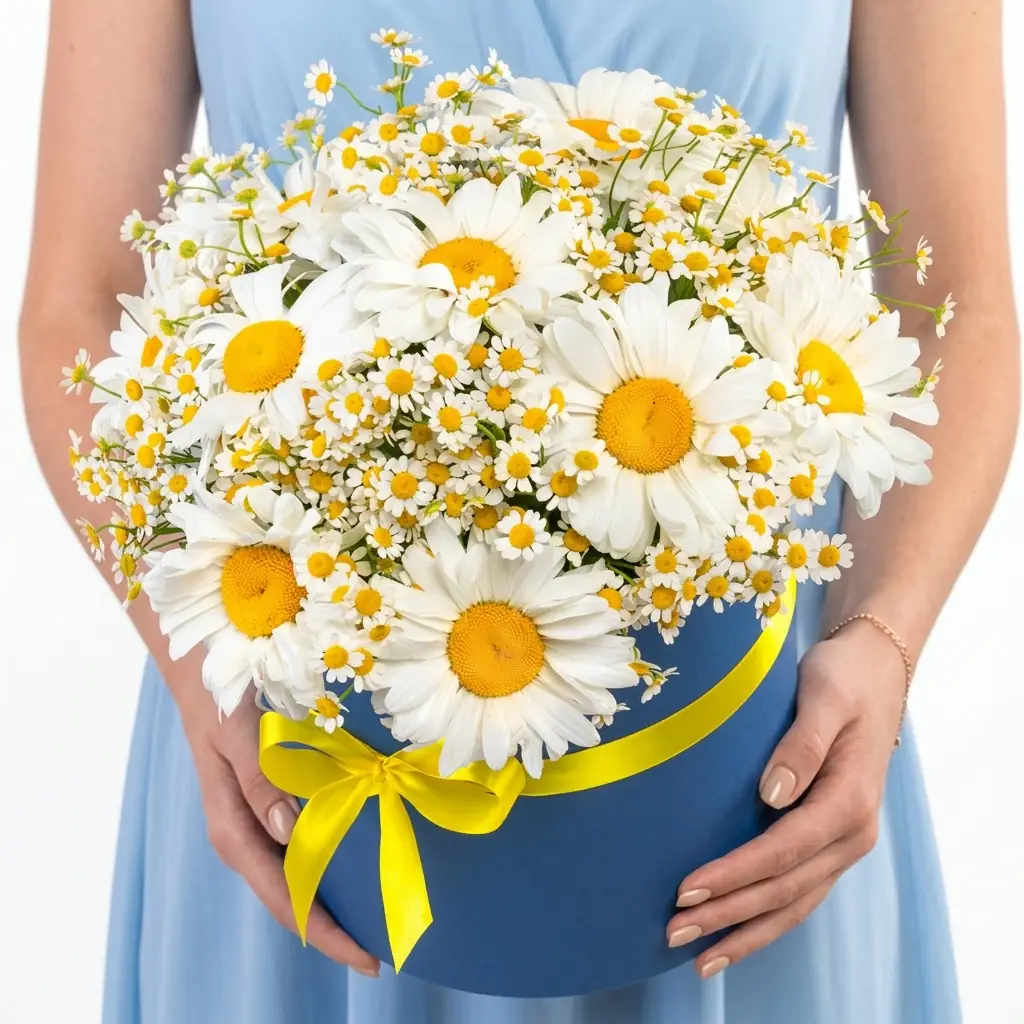 23 Ромашек Микс в коробке — купить по цене от 7015 руб. с доставкой в Нижнем Новгороде