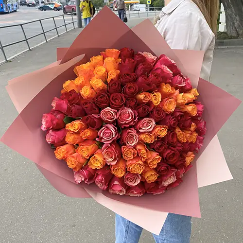 Букет 101 роза спелый микс (40 см) — купить по цене от 12209 руб. с доставкой в Нижнем Новгороде