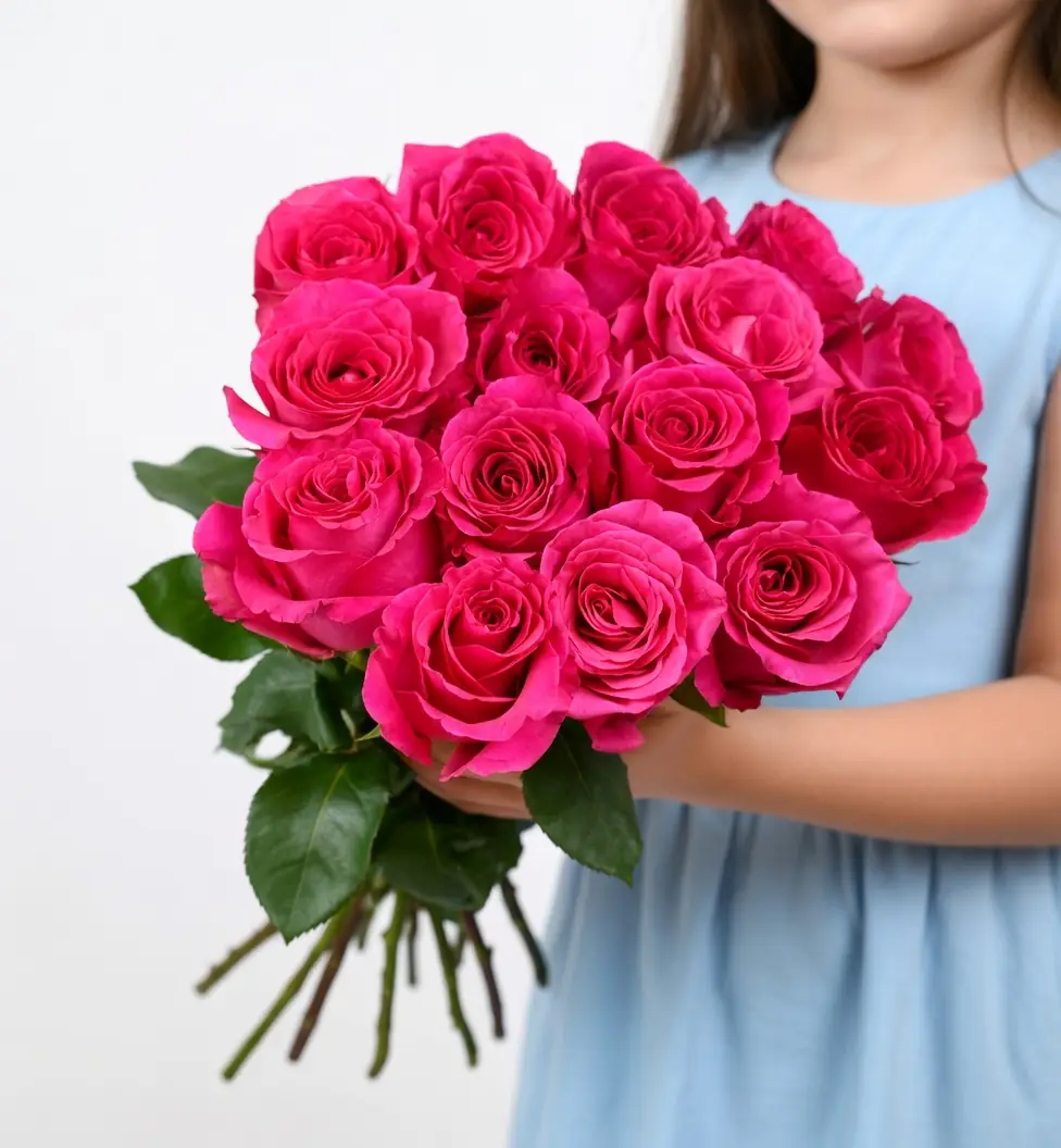 Розовая роза - 15 шт.