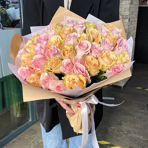 Букет из 51 розы Карамелька (40 см) — отличный выбор для подарка! На сайте вы найдете красочные фотографии, которые помогут сделать выбор. Цена букета — 6509 руб.. Закажите Букет из 51 розы Карамелька (40 см) с доставкой в Нижнем Новгороде и по области.