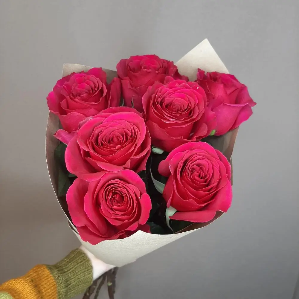 Букет живых цветов из 7 Малиновых роз