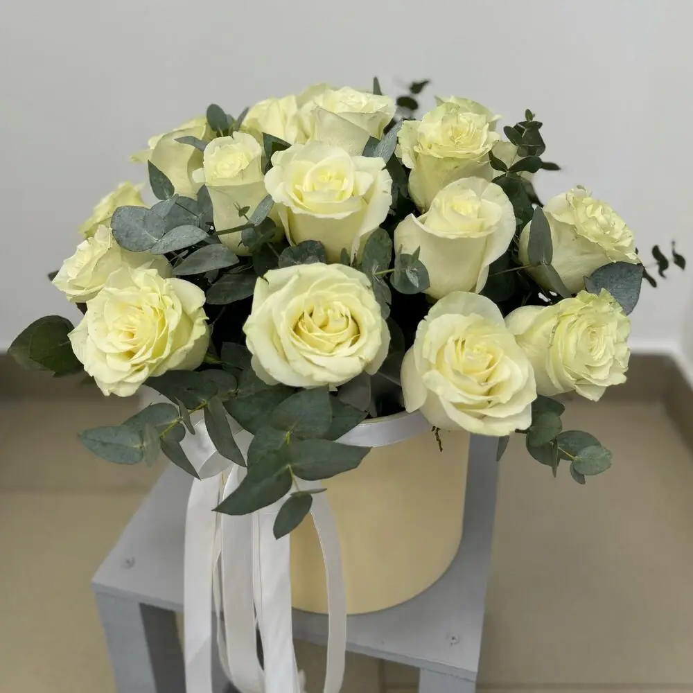 19 Белых роз в шляпной коробке