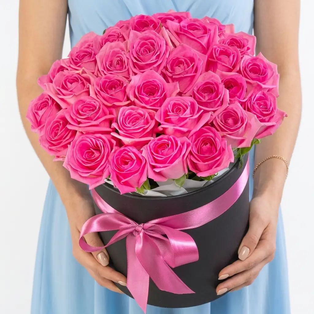 35 Розовых Роз в Коробке