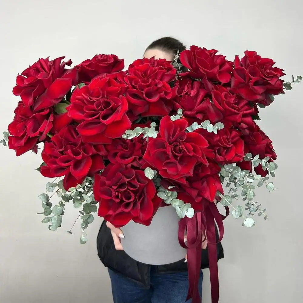 Французские красные розы в шляпной коробке — купить с доставкой в Нижнем Новгороде