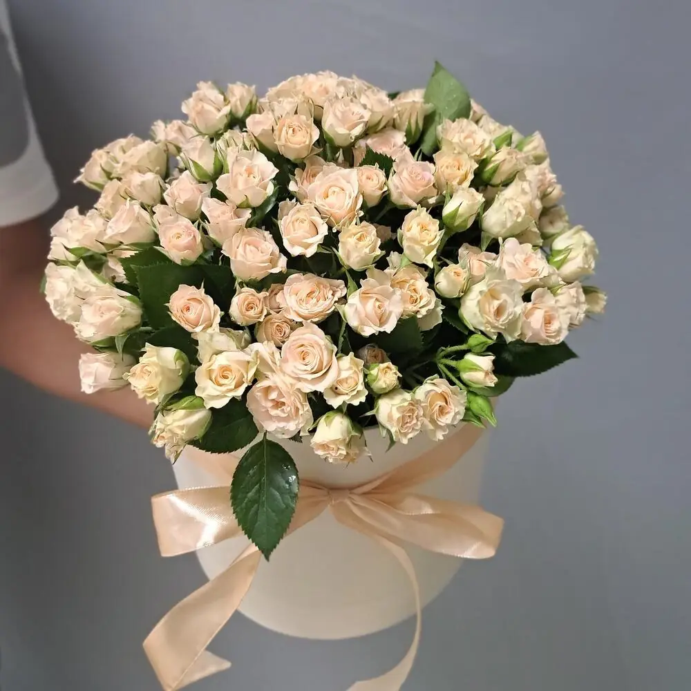 Кустовые бежевые розы в коробке — купить с доставкой в Нижнем Новгороде