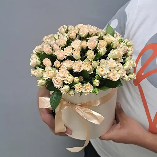 Кустовые бежевые розы в коробке
