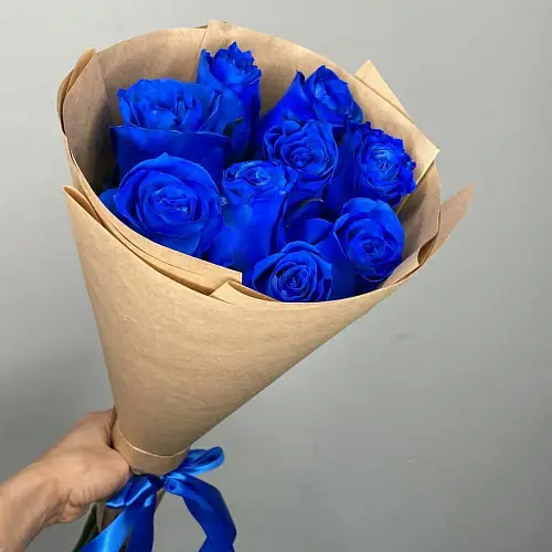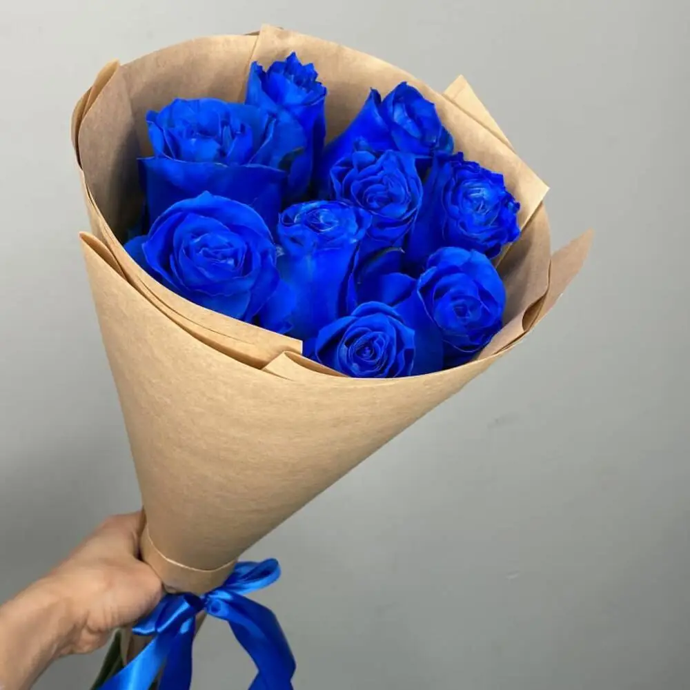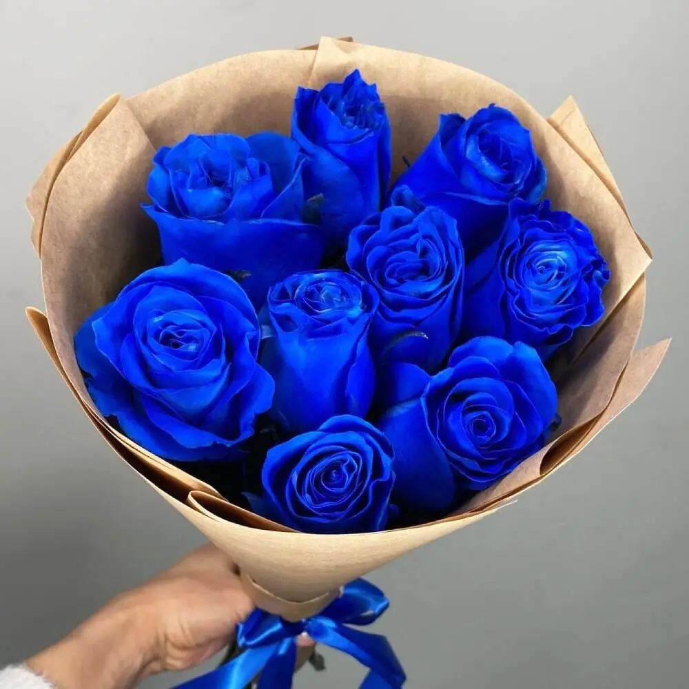 9 Синих роз в крафте — купить по цене от 4600 руб. с доставкой в Нижнем Новгороде