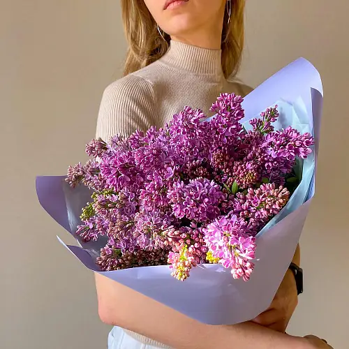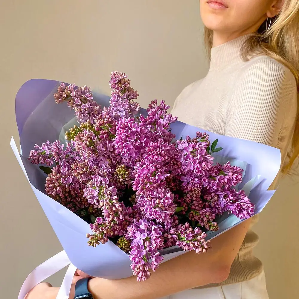 Композиция 7 веток сирени в дизайнерской упаковке — купить по цене от 4800 руб. с доставкой в Нижнем Новгороде