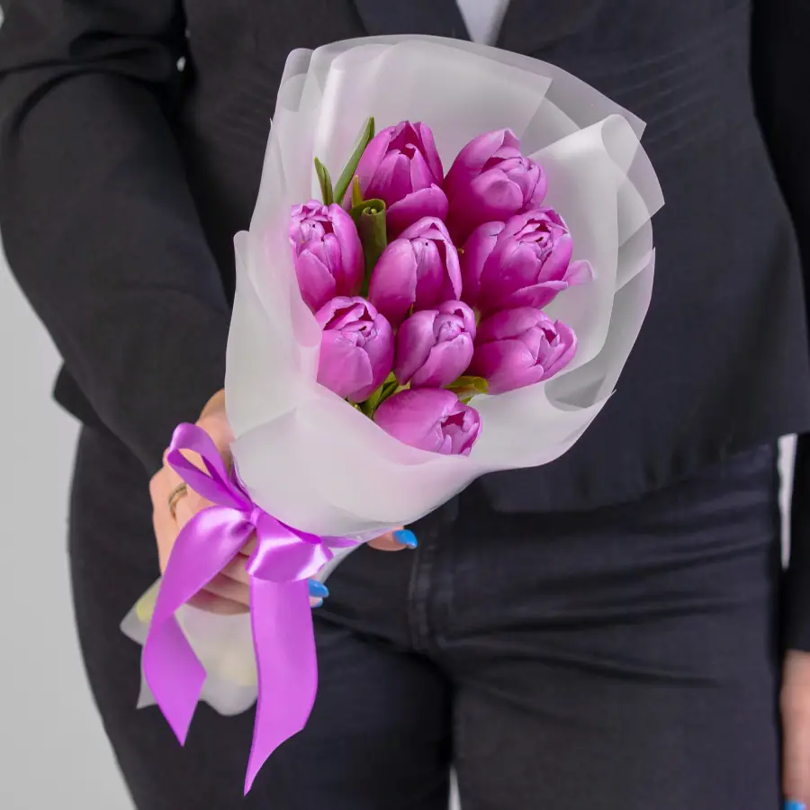 9 Сиреневых Тюльпанов в упаковке — купить по цене от 2790 руб. с доставкой в Нижнем Новгороде