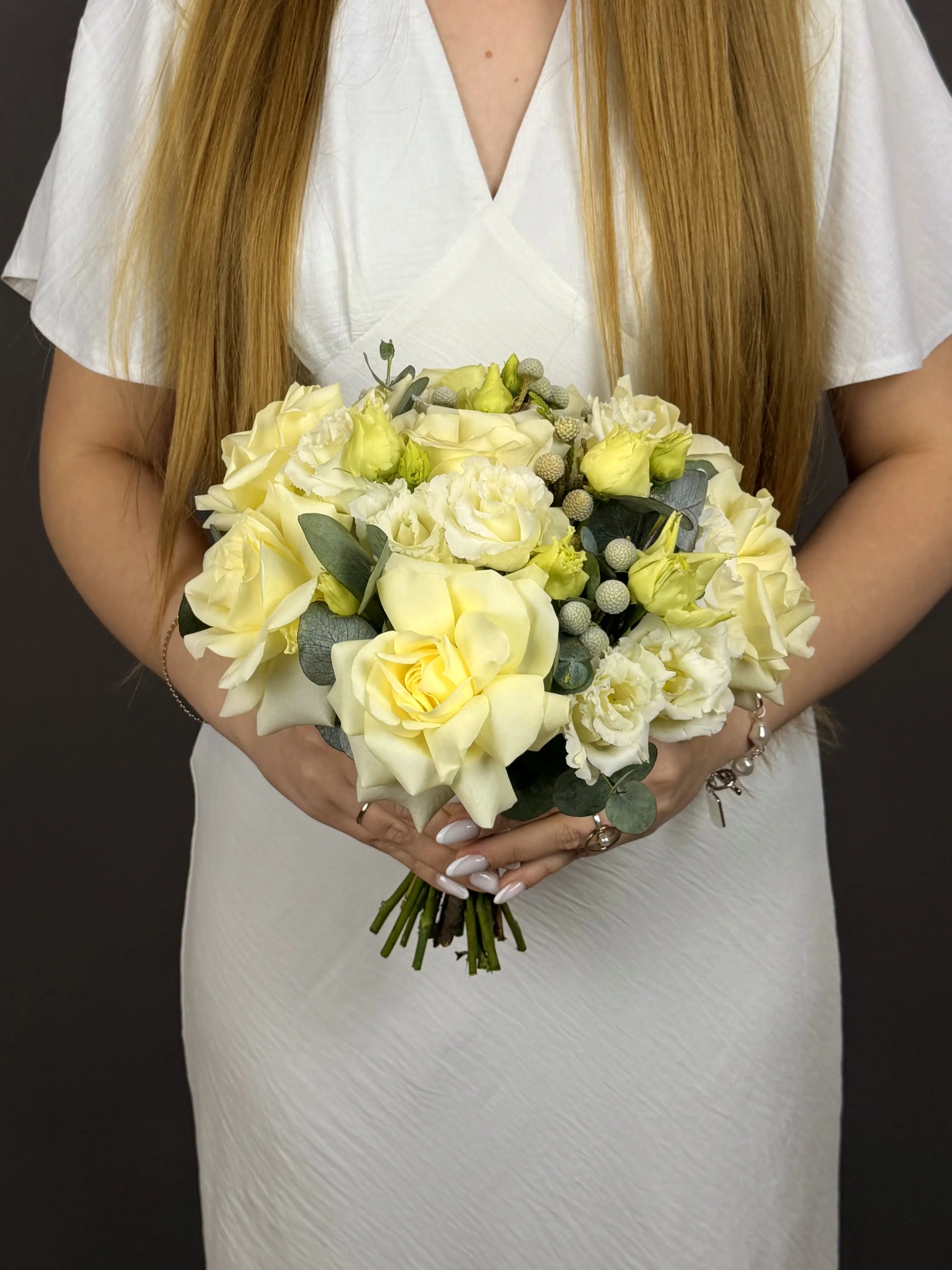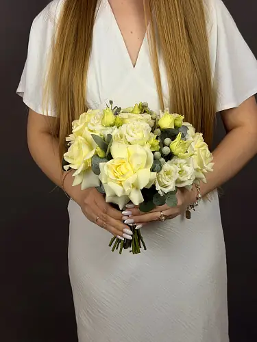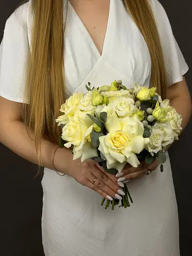 Букет невесты из кенийской розы и эустомы