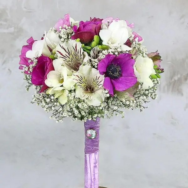 Композиция невесты из анемонов, с фрезией белой и латирусом — отличный выбор для дополнения очаровательного образа! На сайте "Букет-НН" Вы найдете свадебные букеты выполненные в разных техниках и стилях. Цена данного букета —5210 руб., а в его состав входят:Фрезия 6 шт, Альстромерия микс 1 шт, Анемон микс 7 шт, Латирус 3 шт, Гипсофила 3 шт, Лента атласная. Закажите Композиция невесты из анемонов, с фрезией белой и латирусом с доставкой Нижнем Новгороде и по области