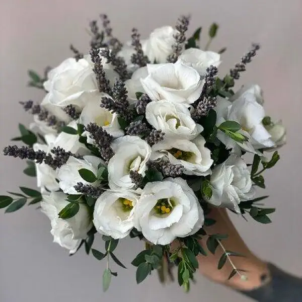 Композиция невесты из белой эустомы и лаванды — купить по цене от 4401 руб. с доставкой в Нижнем Новгороде