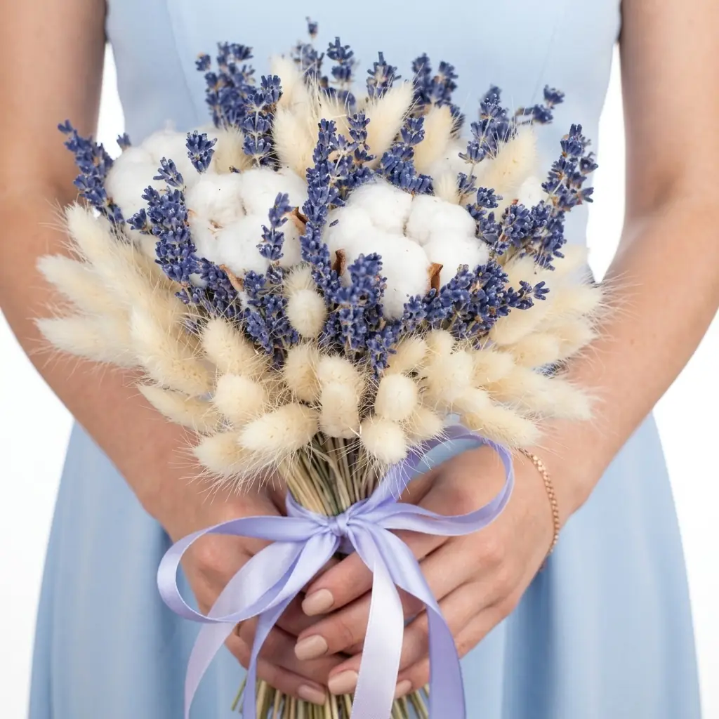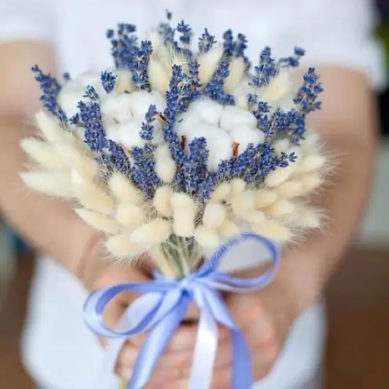 Композиция невесты из хлопка,лаванды и лагуруса. — купить по цене от 4210 руб. с доставкой в Нижнем Новгороде