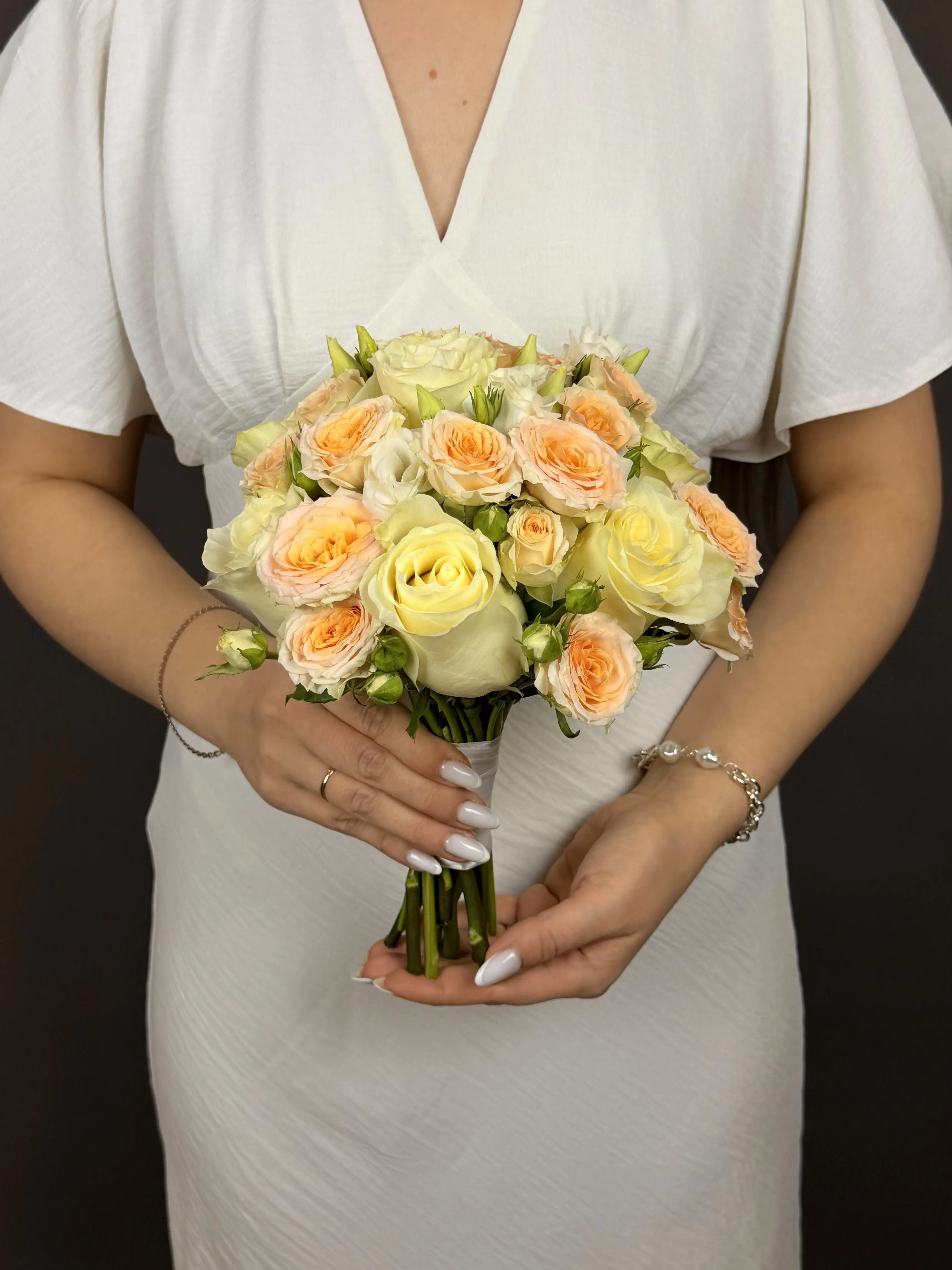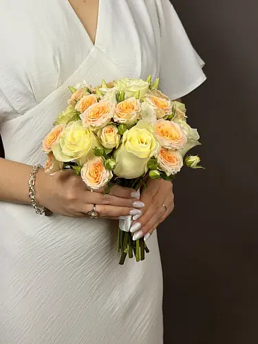 Букет с кустовыми розами — отличный выбор для дополнения очаровательного образа! На сайте "Букет-НН" Вы найдете свадебные букеты выполненные в разных техниках и стилях. Цена данного букета —6990 руб., а в его состав входят:Роза Эквадор - 7 шт, Роза кустовая - 6 шт, Эустома - 2 шт, Лента атласная. Закажите Букет с кустовыми розами с доставкой Нижнем Новгороде и по области