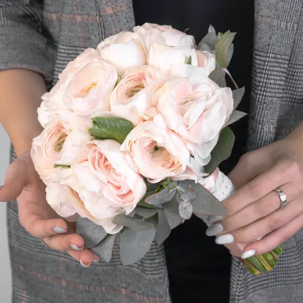 Свадебный букет из ранункулюсов и эвкалипта — купить по цене от 6800 руб. с доставкой в Нижнем Новгороде