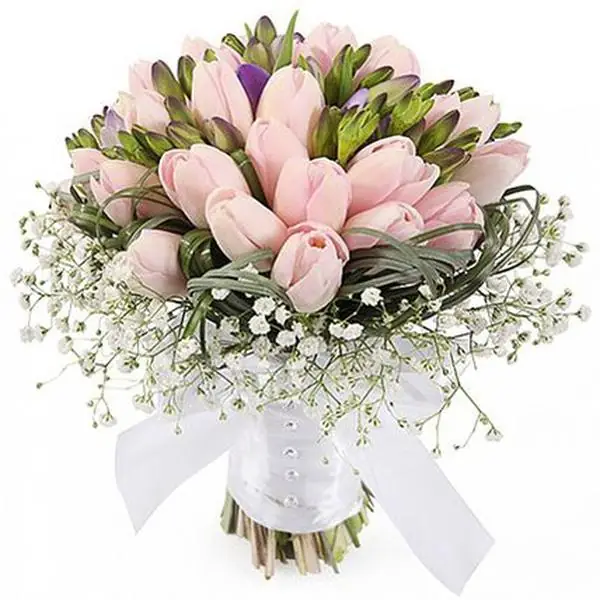 Тюльпаны и фрезии для невесты — отличный выбор для дополнения очаровательного образа! На сайте "Букет-НН" Вы найдете свадебные букеты выполненные в разных техниках и стилях. Цена данного букета —10100 руб., а в его состав входят:Тюльпан нежно-розовый — 25 шт. , Фрезия — 10 шт. , Гипсофила — 5 шт. , Зелень «Беарграсс» , Лента атласная — 2 шт.. Закажите Тюльпаны и фрезии для невесты с доставкой Нижнем Новгороде и по области