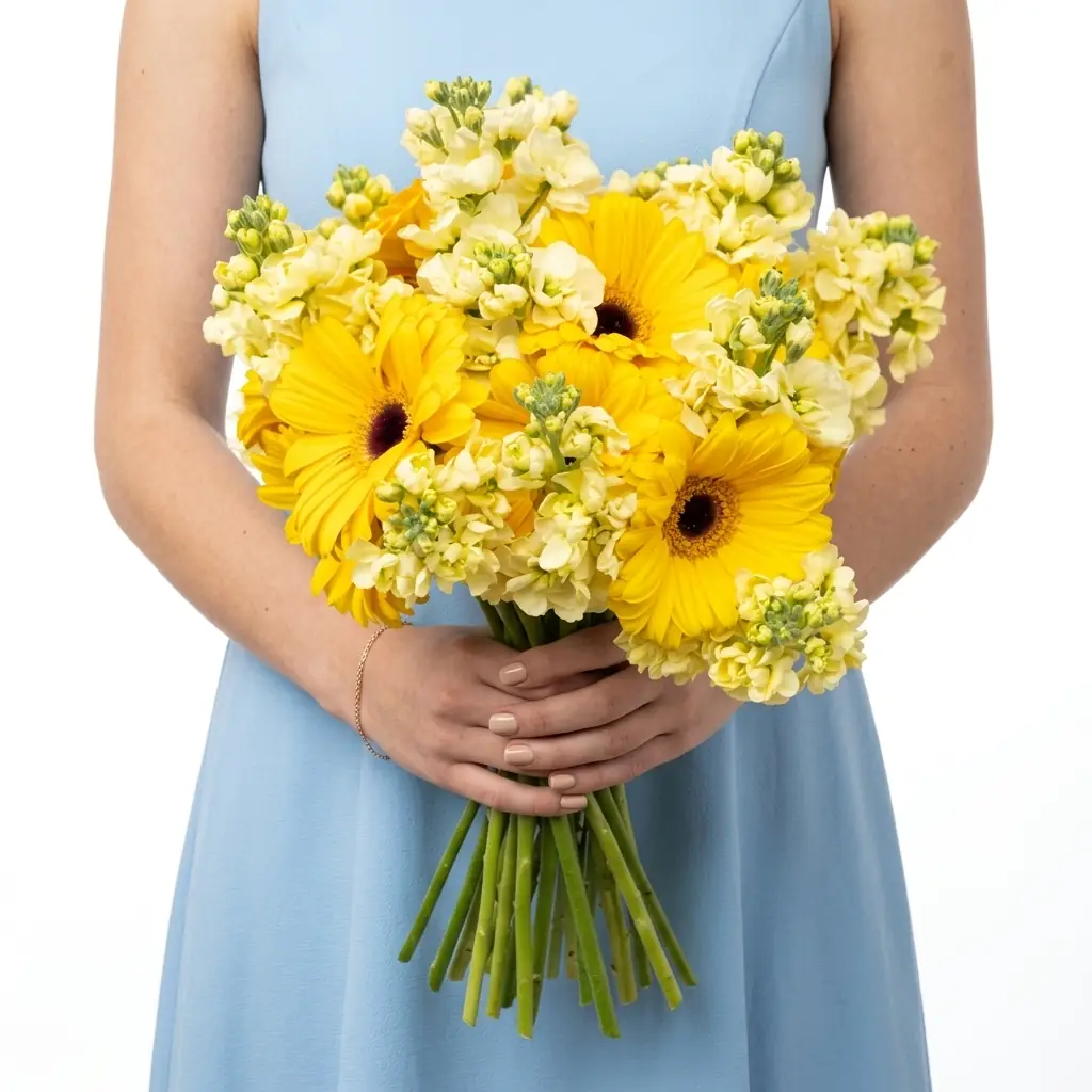 Букет невесты с герберой и маттиолой — отличный выбор для дополнения очаровательного образа! На сайте "Букет-НН" Вы найдете свадебные букеты выполненные в разных техниках и стилях. Цена данного букета —6880 руб., а в его состав входят:Гербера Желтая - 9 шт., Маттиола Белая - 11 шт., Лента атласная , . Закажите Букет невесты с герберой и маттиолой с доставкой Нижнем Новгороде и по области
