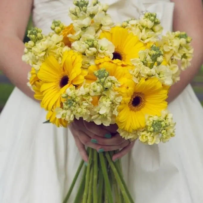 Букет невесты с герберой и маттиолой