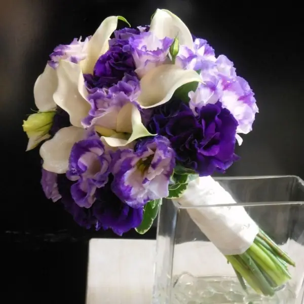 Букет невесты с каллами и эустомой — отличный выбор для дополнения очаровательного образа! На сайте "Букет-НН" Вы найдете свадебные букеты выполненные в разных техниках и стилях. Цена данного букета —8390 руб., а в его состав входят:Питтоспорум Ilan - 5 шт., Эустома Фиолетовая - 3 шт., Эустома Сиреневая - 3 шт, Калла - 9 шт., Лента атласная. Закажите Букет невесты с каллами и эустомой с доставкой Нижнем Новгороде и по области