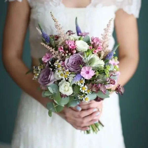 Букет невесты с ромашками и астильбой — отличный выбор для дополнения очаровательного образа! На сайте "Букет-НН" Вы найдете свадебные букеты выполненные в разных техниках и стилях. Цена данного букета —7620 руб., а в его состав входят:Астильба Нежно-Розовая - 5 шт., Хамелациум Розовый - 5 шт., Вероника Фиолетовая - 5 шт., Лизиантус Белый - 3 шт., Ромашка Кустовая - 3 шт., Роза Сиреневая (40 см.) - 5 шт., Эрингиум Синий - 3 шт., Алхемилла Robustica - 3 шт., Эвкалипт Цинерия - 1 шт., Лента атласная , . Закажите Букет невесты с ромашками и астильбой с доставкой Нижнем Новгороде и по области