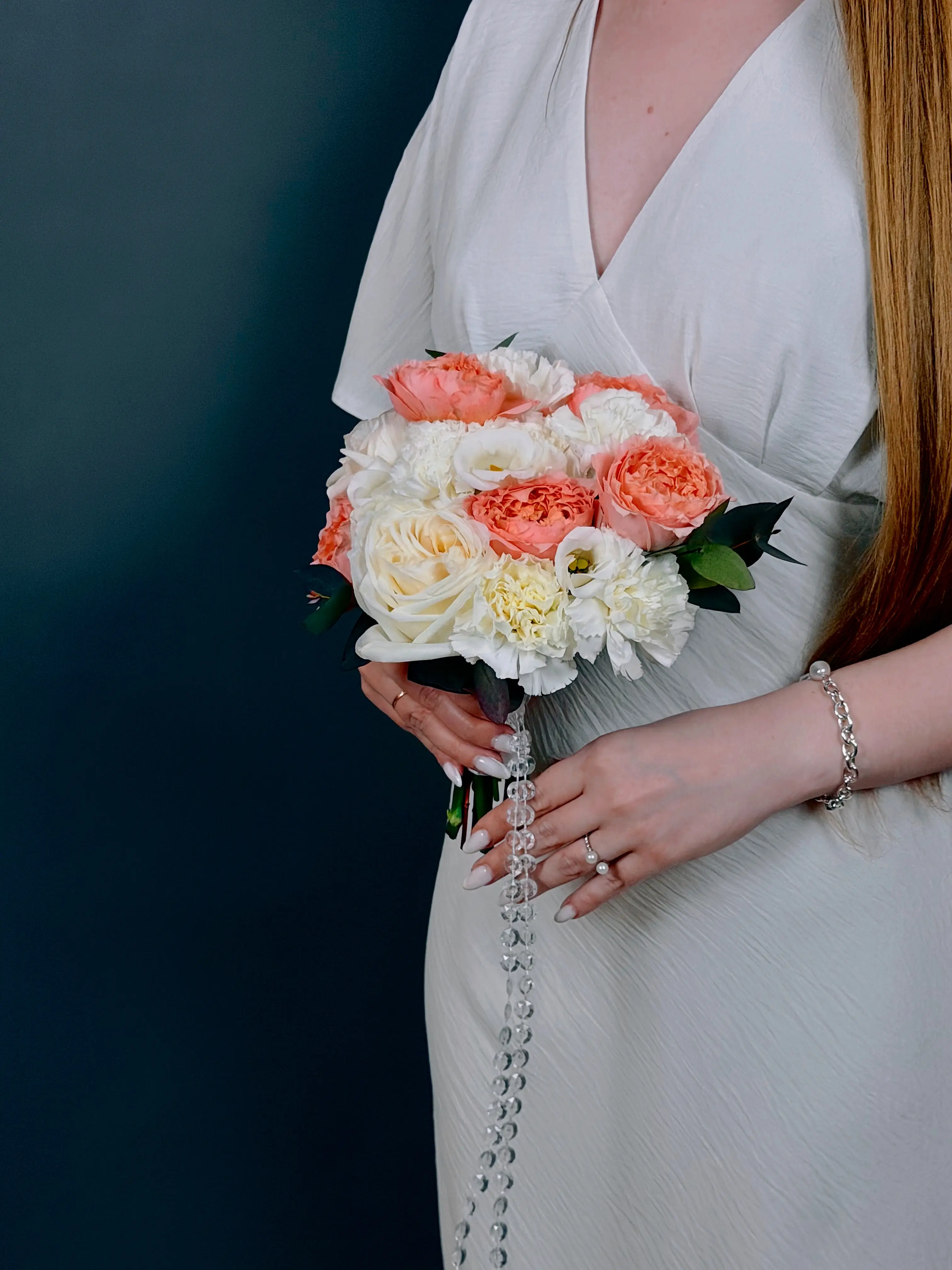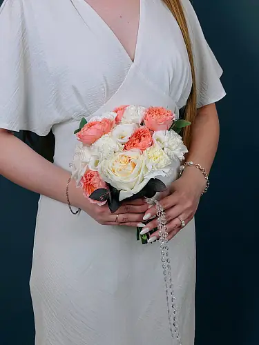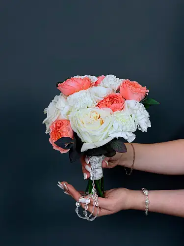Свадебный букет из кустовых роз и эустомы — купить по цене от 5940 руб. с доставкой в Нижнем Новгороде