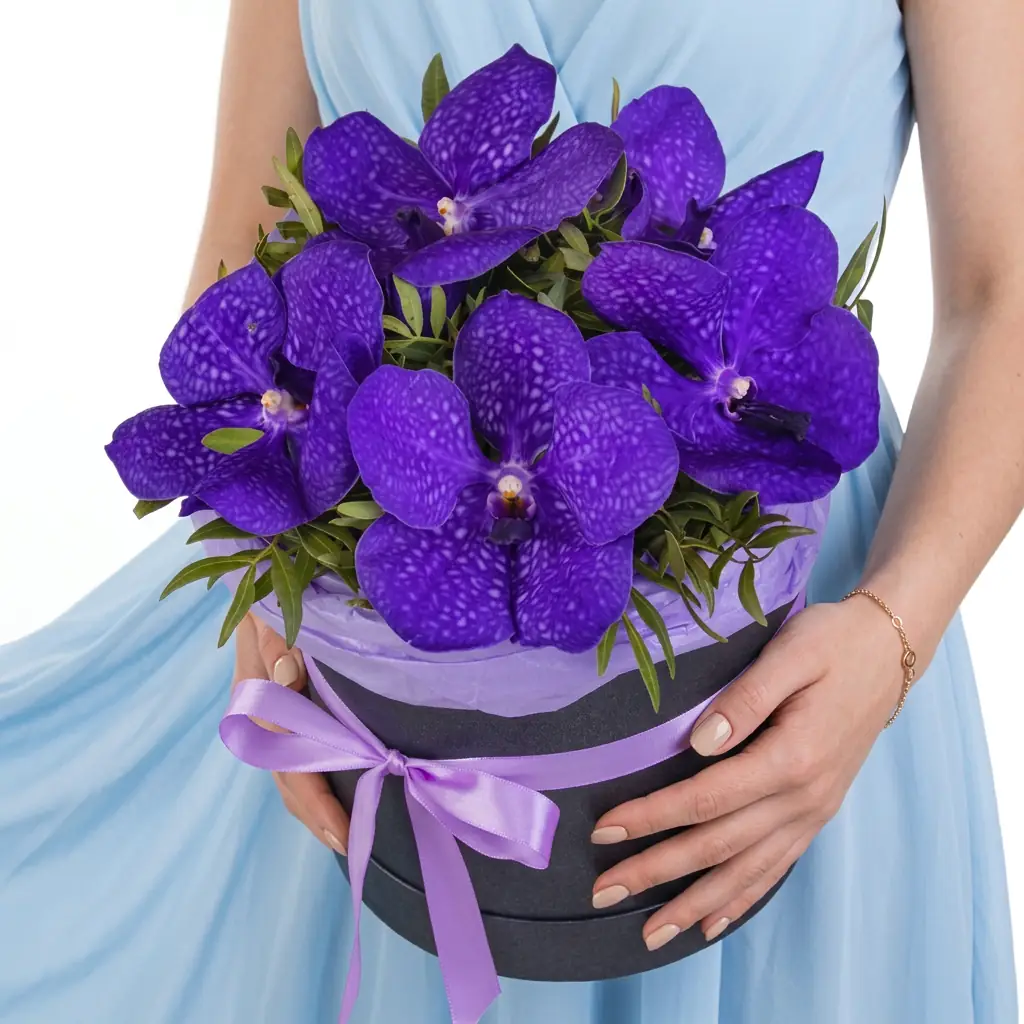 На фото - 5 Синих Ванд в коробке . В составе данной композиции: Ванда - 5 шт, Зелень, Коробка, Флористическая губка, Лента атласная. На сайте sbuket-nn.ru Вы найдете большой выбор недорогих букетов, цветочных композиций и корзин цветов для любого повода. У нас можно заказать 5 Синих Ванд в коробке за 2825 руб. с доставкой Нижнем Новгороде и по области