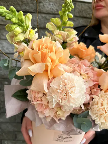 Соберем в день доставки, только из свежих цветов и затем с улыбкой вручим получателю.