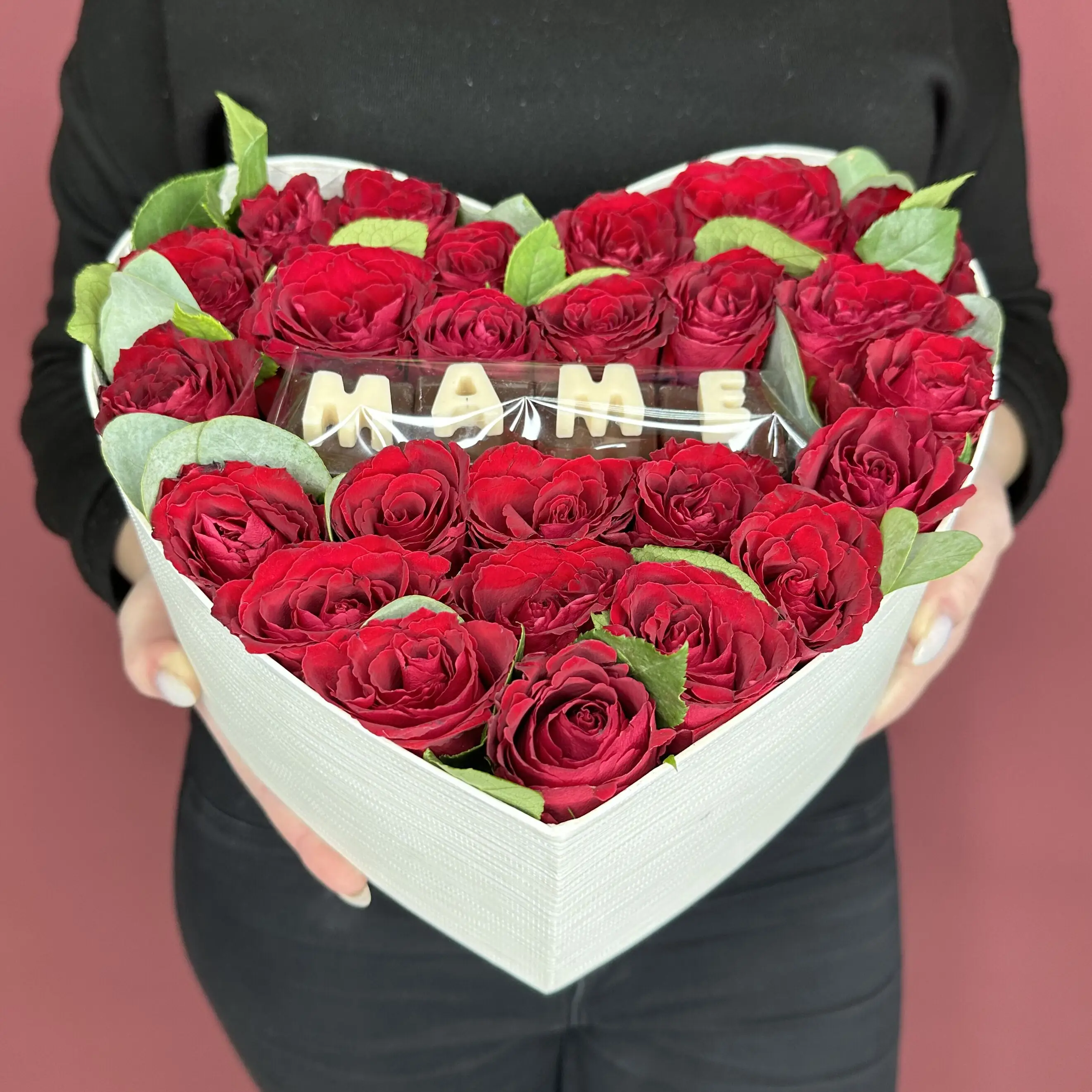 Коробка сердце с розами "Маме" — купить с доставкой в Нижнем Новгороде