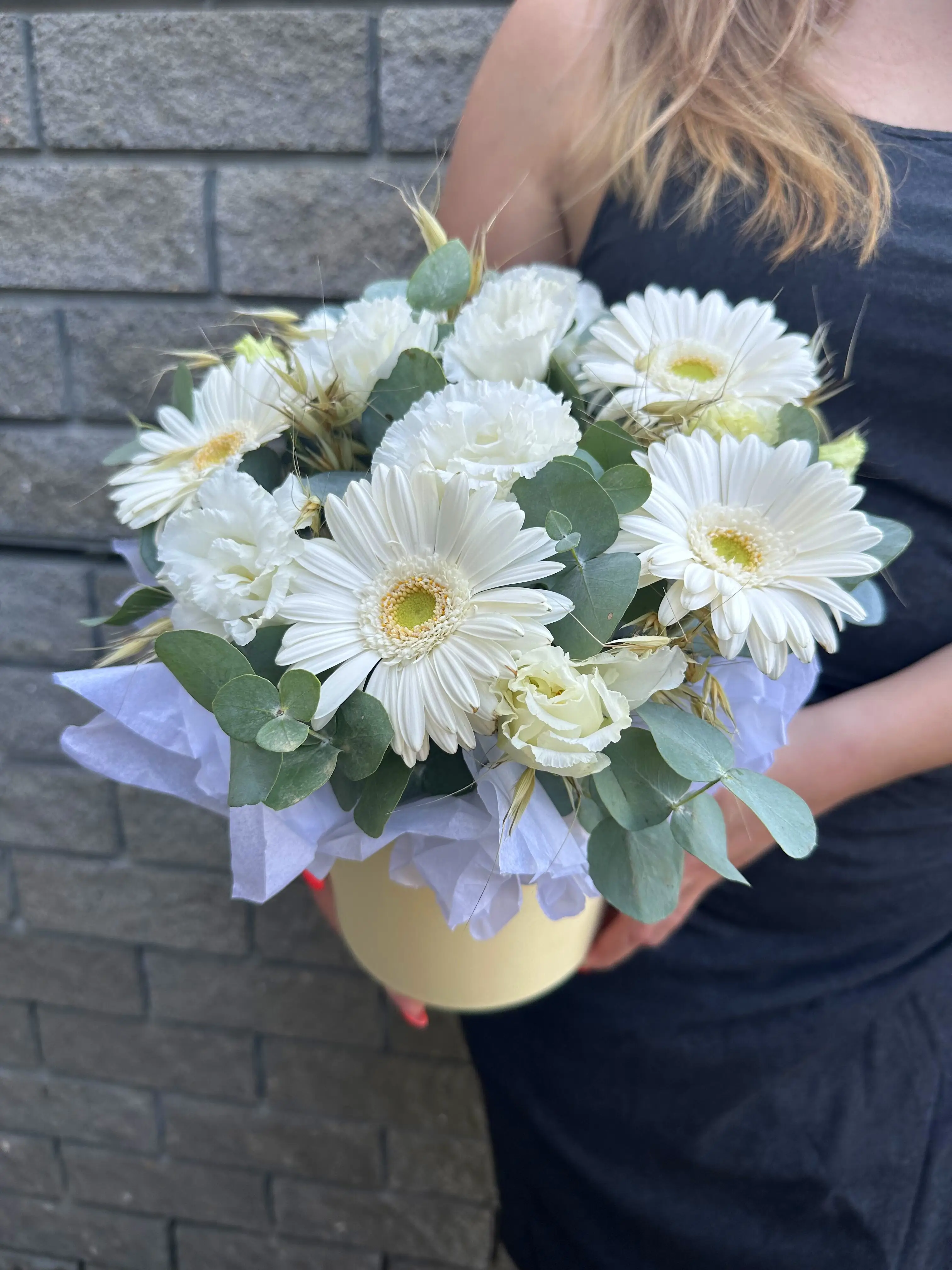 Шляпная коробка с эустомой и герберой — купить с доставкой в Нижнем Новгороде