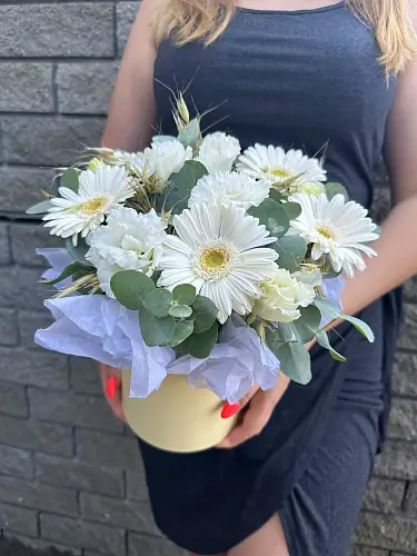 Соберем в день доставки, только из свежих цветов и затем с улыбкой вручим получателю.