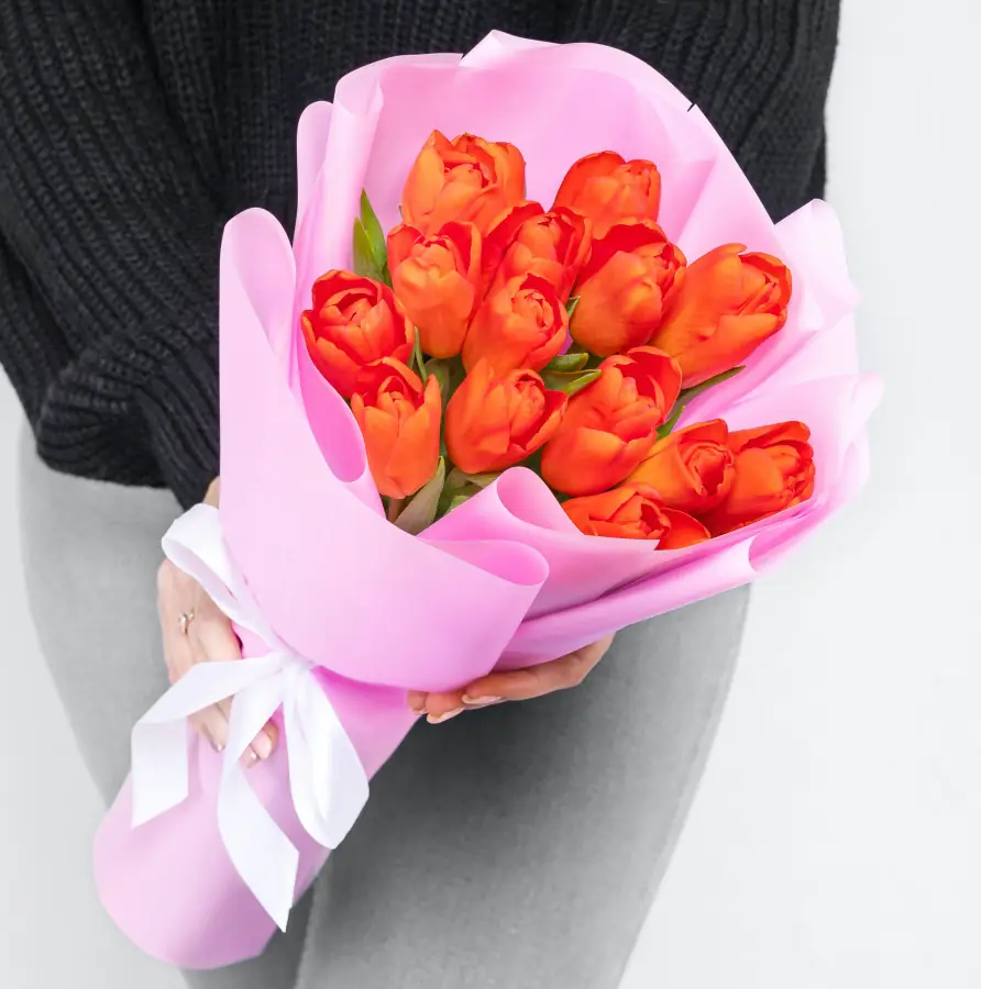 Букет 15 рыжих тюльпанов — купить по цене от 4150 руб. с доставкой в Нижнем Новгороде