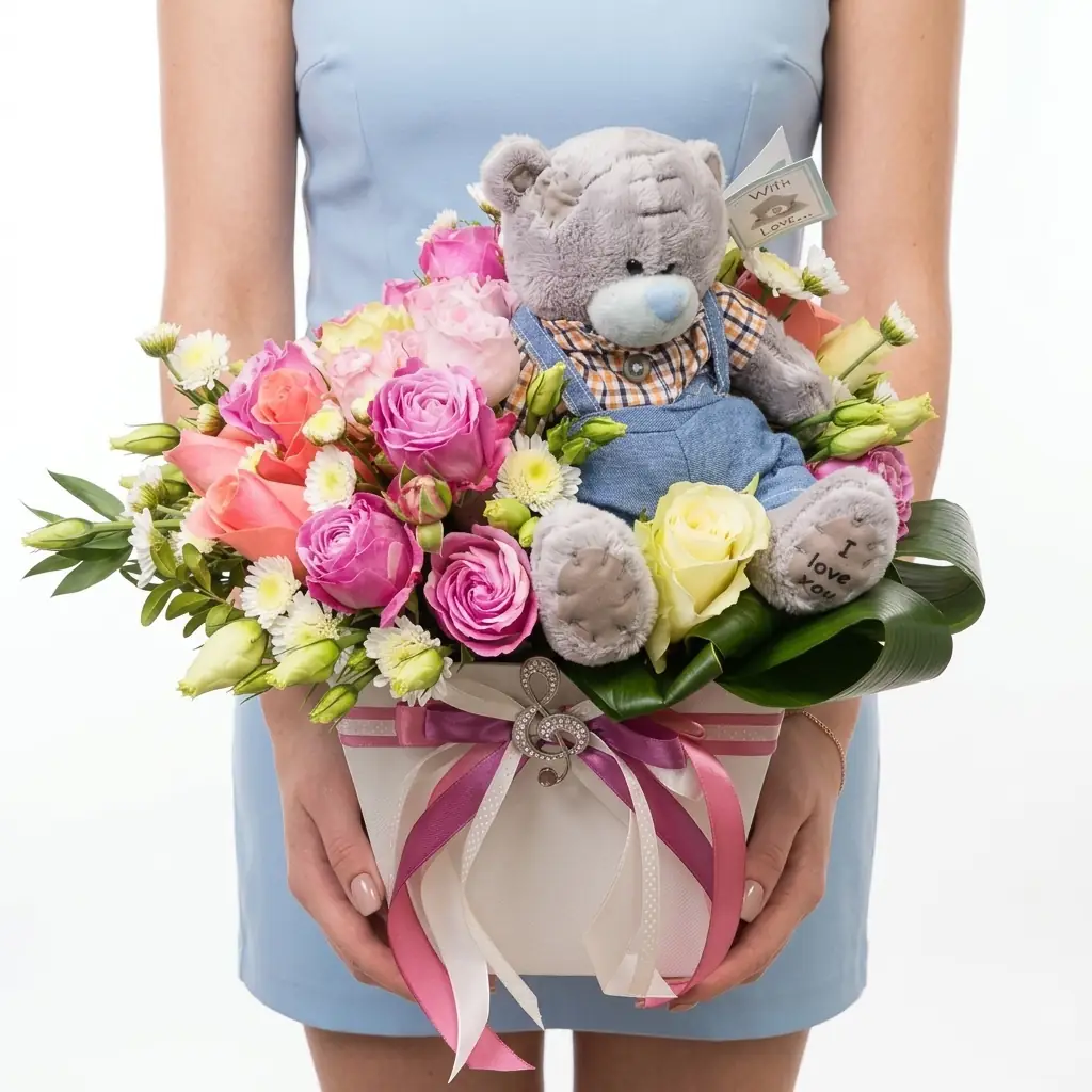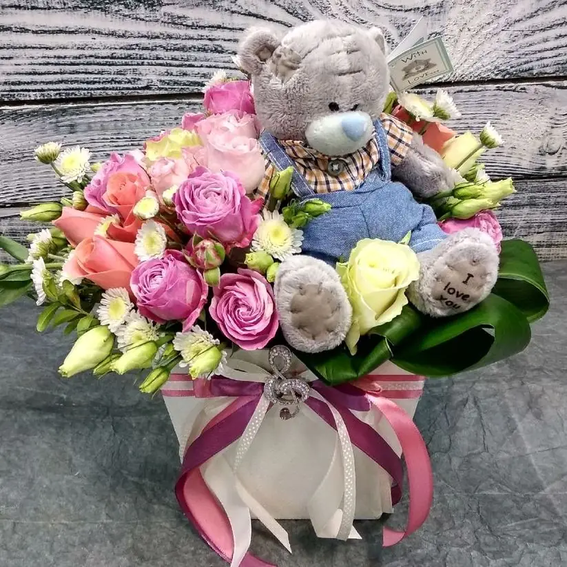 Букет нежное признание “С мишкой” — купить с доставкой в Нижнем Новгороде