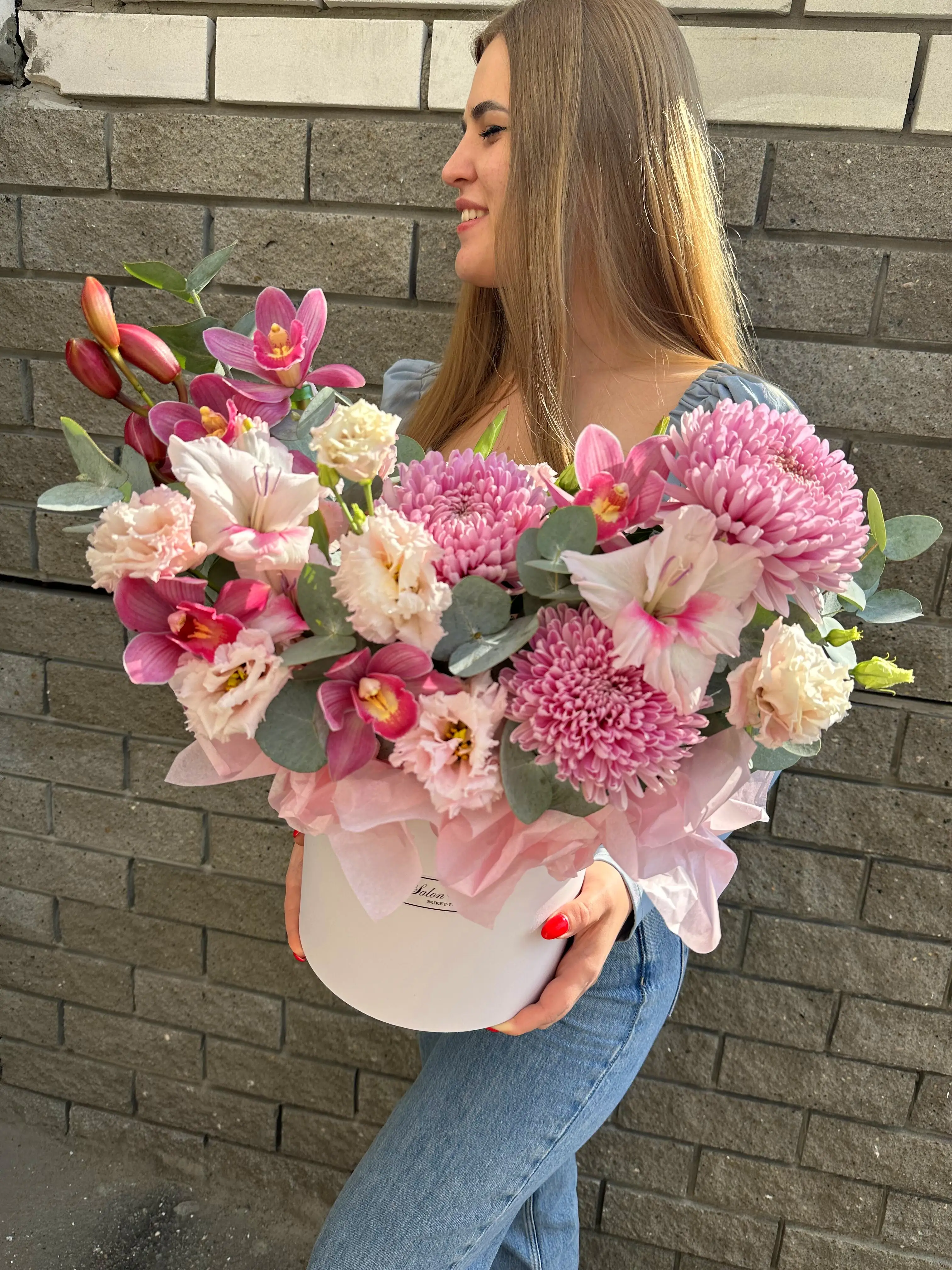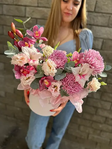 Соберем в день доставки, только из свежих цветов и затем с улыбкой вручим получателю.