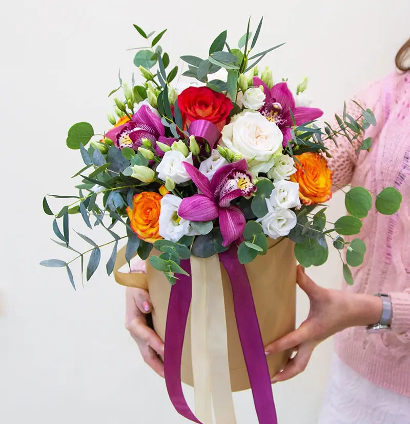 На фото - Шляпная коробка "Барселона" . В составе данной композиции: Роза - 5 шт., Орхидея - 3 шт., Лизиантус - 4 шт., Зелень, Шляпная коробка, Флористическая губка, Лента атласная, . На сайте sbuket-nn.ru Вы найдете большой выбор недорогих букетов, цветочных композиций и корзин цветов для любого повода. У нас можно заказать Шляпная коробка "Барселона" за 7660 руб. с доставкой Нижнем Новгороде и по области