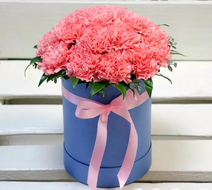 На фото - Шляпная коробка "Розовый фламинго" . В составе данной композиции: Диантус - 19 шт., Зелень, Шляпная коробка, Флористическая губка, Лента, . На сайте sbuket-nn.ru Вы найдете большой выбор недорогих букетов, цветочных композиций и корзин цветов для любого повода. У нас можно заказать Шляпная коробка "Розовый фламинго" за 4070 руб. с доставкой Нижнем Новгороде и по области