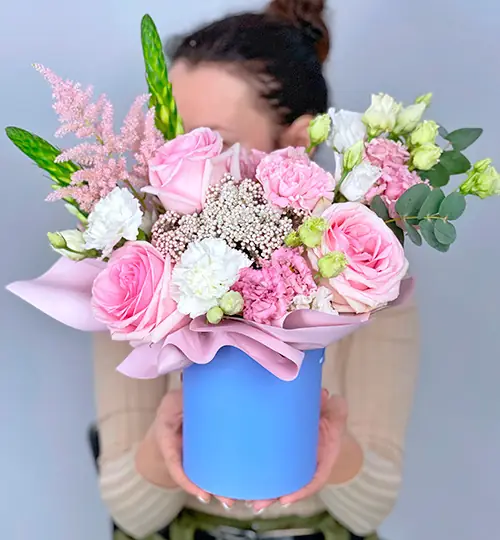 Стильная шляпная коробка с в розовых оттенках символизирует какую-то тайну, которую знают только Он и Она. Невероятной красоты букет будет кстати и как подарок на знаменательный день и просто в качестве комплимента или признания в любви. Цветы в шляпной коробке находятся в специальной флористической губке - оазисе - и не требуют особого ухода. Шляпная коробка - практична, т.к. для букета не нужна ваза.