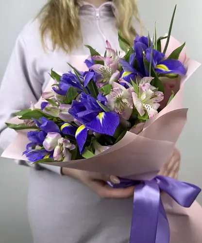 Букет из альстромерии и ирисов - это сочетание элегантности и изысканности, которое станет прекрасным подарком для любого случая.