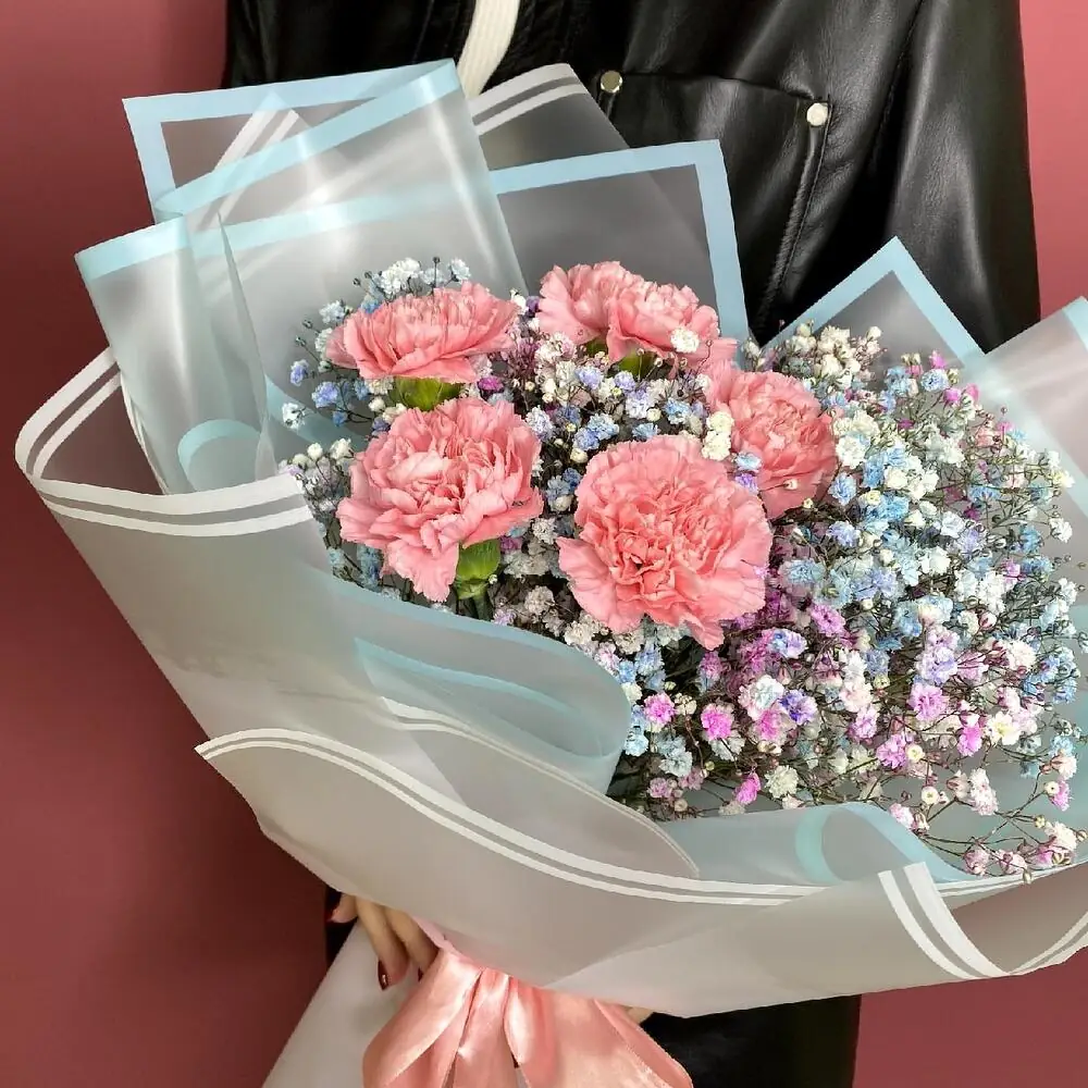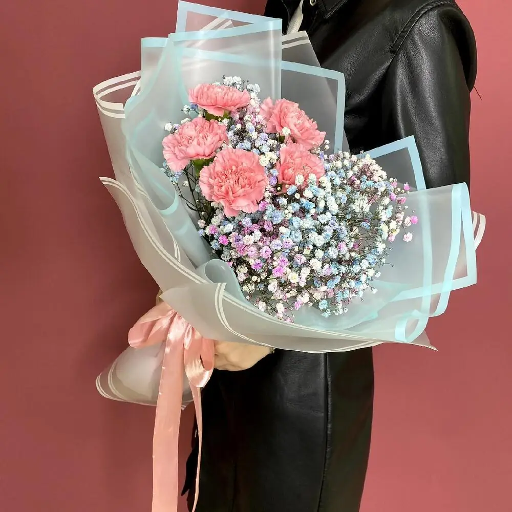 Диантус - это яркий и ароматный цветок, который добавит в ваш букет нотку свежести и элегантности. Гипсофила, в свою очередь, добавит воздушности и легкости, делая ваш подарок еще более привлекательным.
