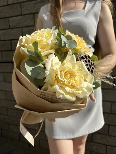 Букет из роз и эвкалипта - это стильный и элегантный подарок, который подойдет для любого случая.