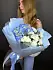 Гортензия и гвоздика - эти цветы придают букету глубину и насыщенность. Голубая гортензия и белые гвоздики создают контраст, делая букет еще более привлекательным.