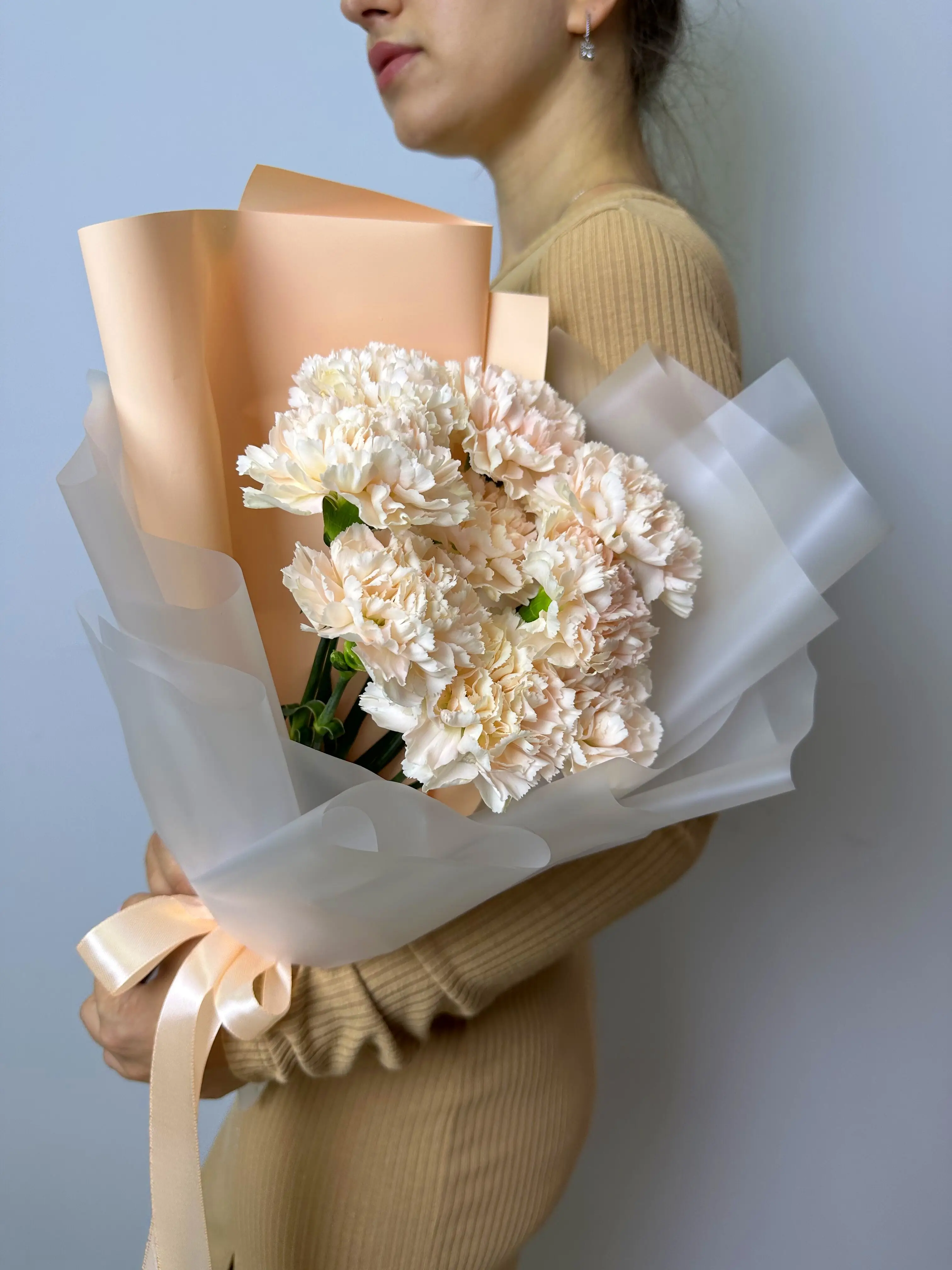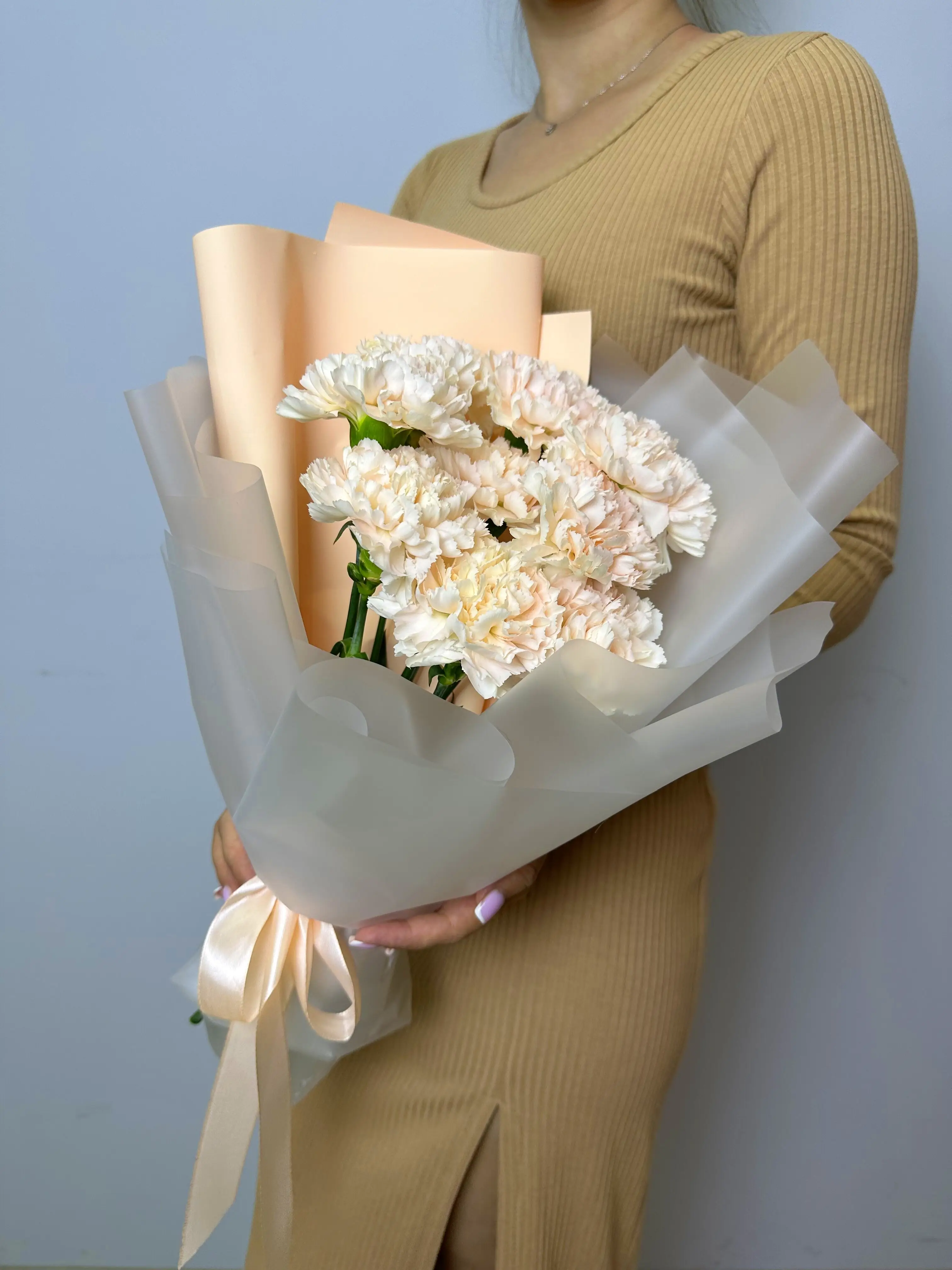 Букет живых цветов из 9 диантусов, оформленный в дизайнерскую упаковку, станет прекрасным подарком для любого случая.