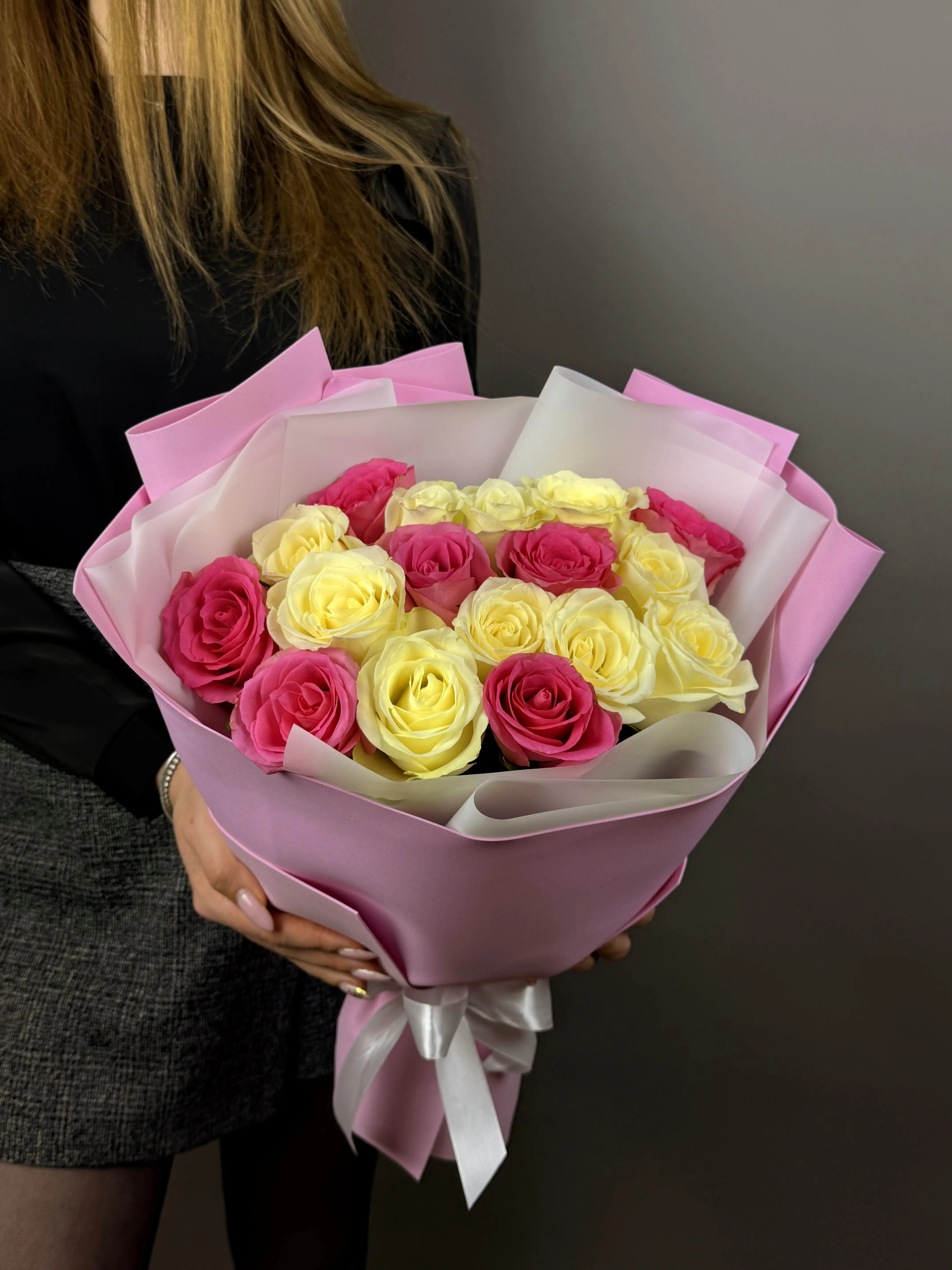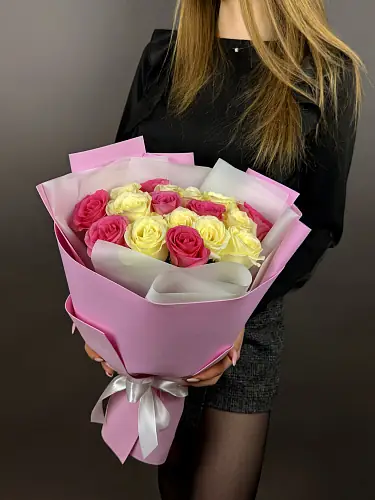 Представляем вам элегантный и утонченный букет из 17 роз, который наполнит ваше пространство атмосферой нежности и изысканности. Этот роскошный букет состоит из свежих роз разных оттенков, что делает его идеальным выбором для любого случая. Розы прекрасно сочетаются между собой, создавая гармоничный ансамбль, который передаст самые теплые чувства и эмоции. Каждая роза в этом букете обладает особой грацией и шармом, воплощая в себе всю красоту и нежность природы. Благодаря своему изяществу и универсальности, этот букет станет прекрасным подарком на день рождения, годовщину, свидание или любое другое важное событие. Такой букет обязательно привлечет внимание и станет центром внимания на любом мероприятии. Его мягкие цвета и плавные линии создадут атмосферу спокойствия и уюта, подчеркнув ваше особое отношение к получателю. Каждый лепесток передает тепло и заботу, делая этот букет лучшим способом выразить свои чувства. Закажите этот чудесный букет уже сегодня и пусть он станет символом вашей любви и внимания. Пусть ваша радость и счастье передадутся вместе с этими прекрасными розами.