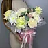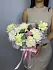 Букет состоит из трех хризантем, двух кустовых хризантем, трех гвоздик и трех веток эвкалипта. Дополняет композицию сухоцвет, что придает букету особый шарм и уникальность.