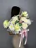 Букет живых цветов с хризантемой и белой французской розой в шляпной коробке станет отличным выбором для любого торжества или особого случая.