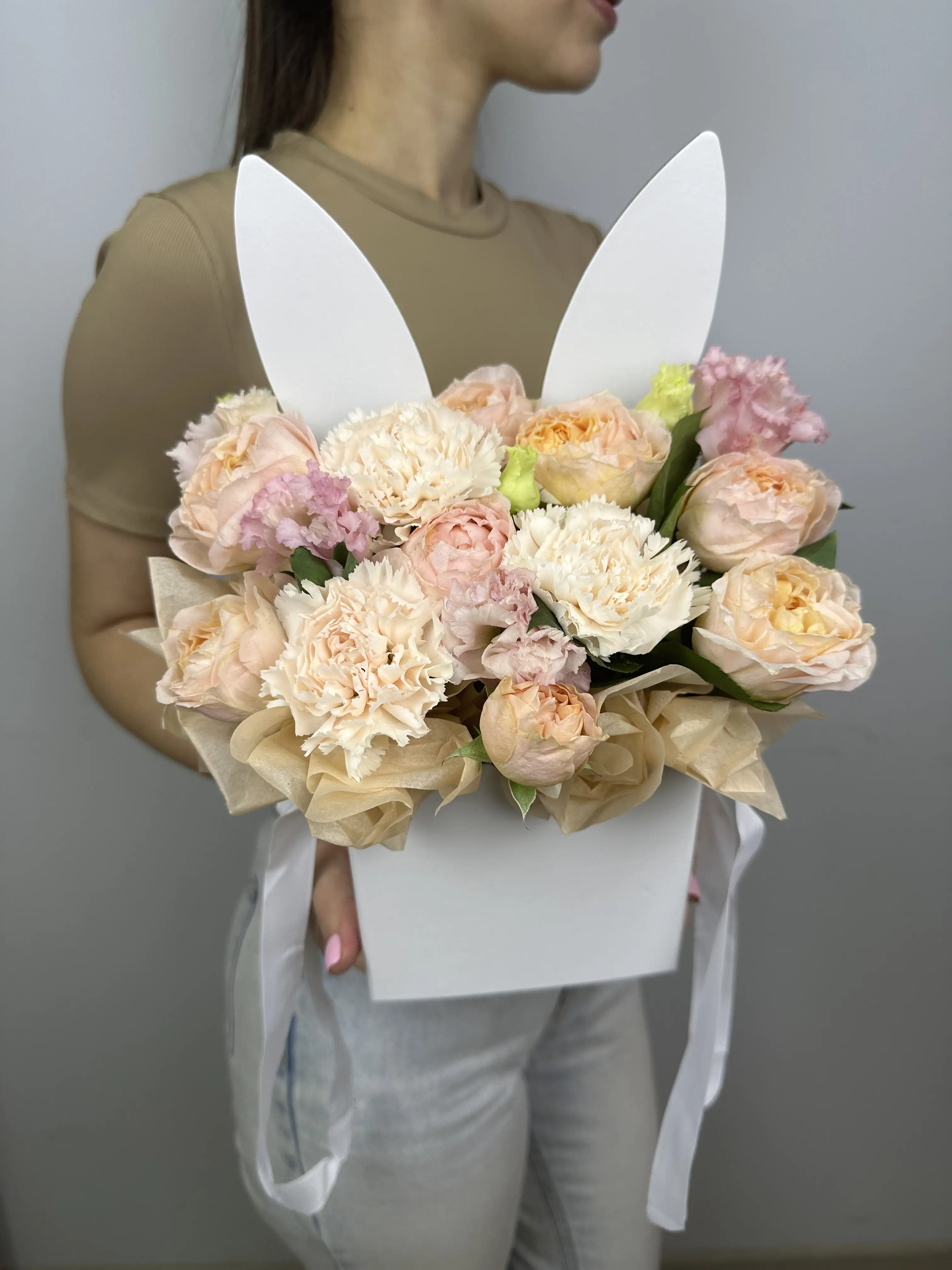 Высота букета составляет 25 см, что делает его компактным и удобным для вручения.