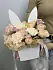 Особенностью букета является влагоудерживающая губка на дне вазы, которая обеспечивает растения водой и предотвращает их увядание.