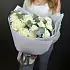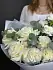 Букет живых цветов из белых диантусов и роз в дизайнерской упаковке